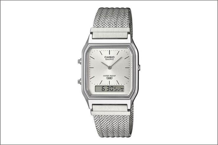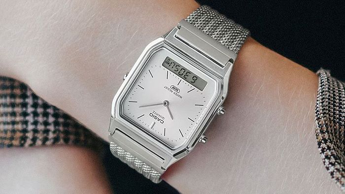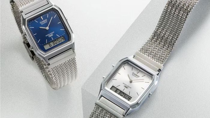 Casio AQ-230EM-7ADF mang đến sự kết hợp hoàn hảo giữa phong cách cổ điển và hiện đại, với mặt vuông đặc trưng và dây đeo lưới bằng thép không gỉ cực kỳ sang trọng.