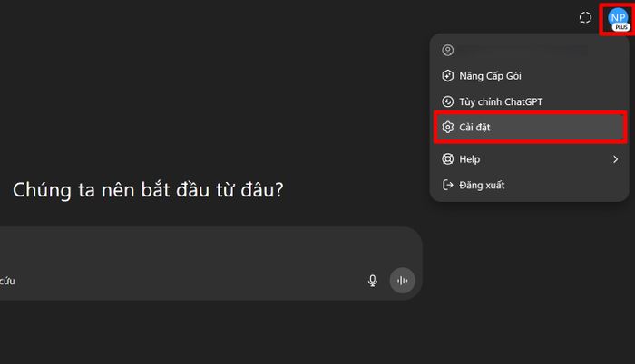 Bước 1: Từ giao diện chính, nhấn chọn avatar cá nhân ở góc trái màn hình, sau đó truy cập vào mục Cài đặt để điều chỉnh thông tin tài khoản.