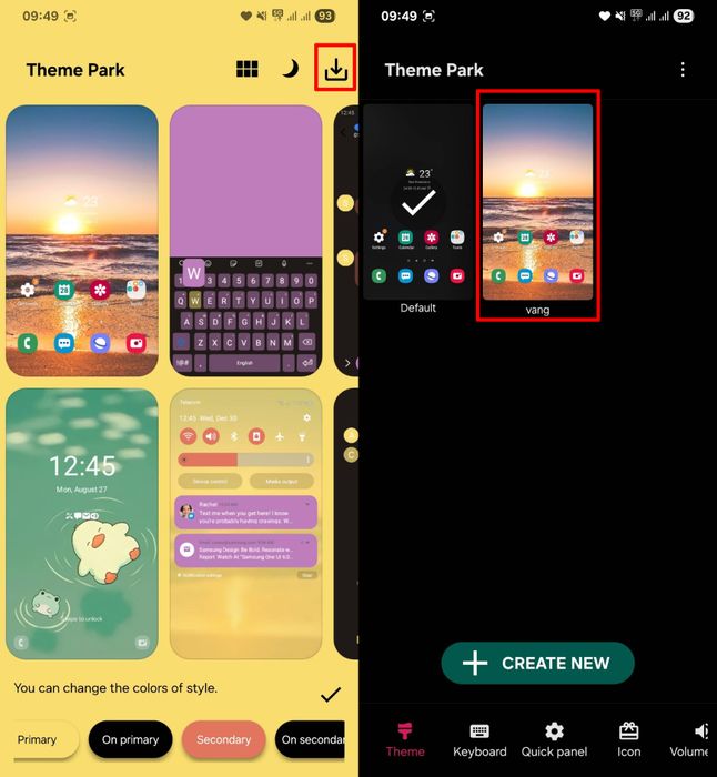 Bước cuối cùng: Hoàn thành mọi chỉnh sửa, nhấn nút mũi tên phải để lưu lại. Quay về màn hình chính, chọn theme mới tạo và áp dụng làm giao diện mặc định cho điện thoại.