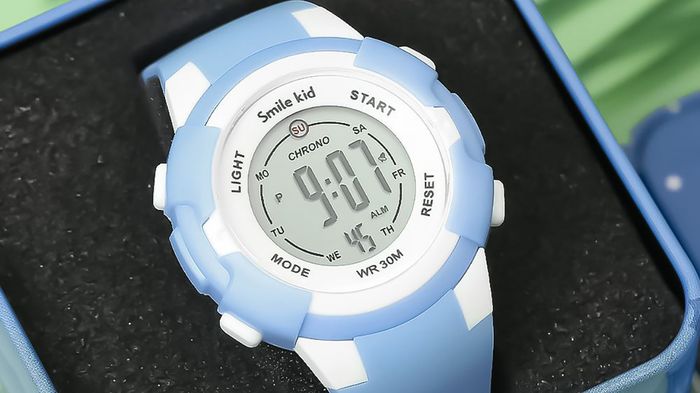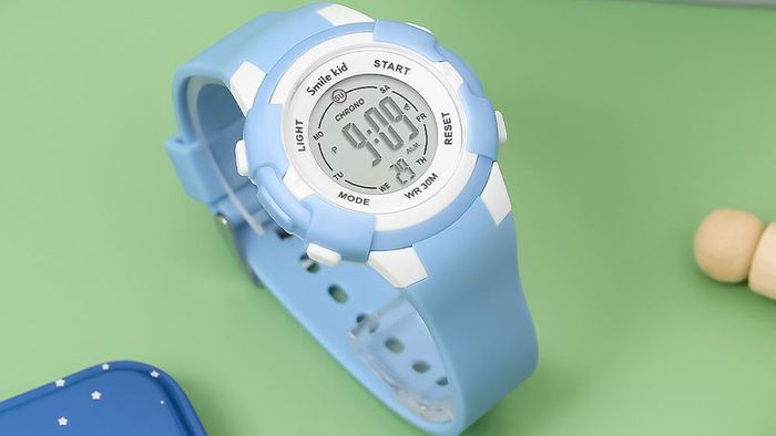 Không chỉ có thiết kế đẹp, chiếc đồng hồ này còn tích hợp nhiều tính năng hữu ích như báo thức, đèn LED và khả năng chống nước 3 ATM, giúp bé an tâm đeo khi rửa tay hoặc ra ngoài gặp mưa.