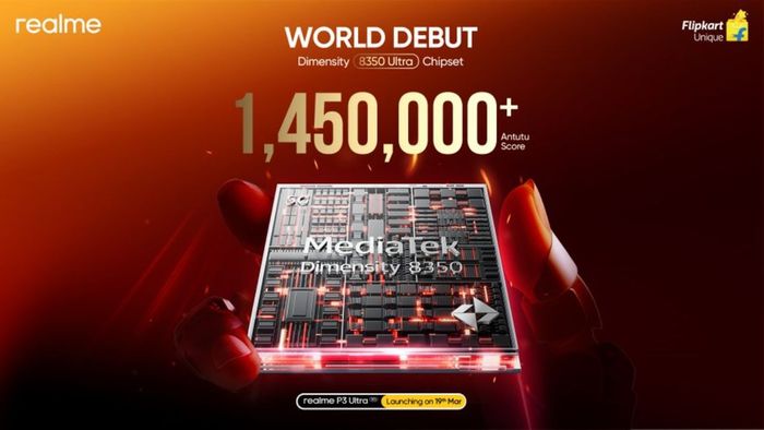 realme P3 Ultra được kỳ vọng sẽ là thiết bị mạnh mẽ nhất trong series P3. Đây sẽ là smartphone đầu tiên sở hữu chip Dimensity 8350-Ultra, đạt điểm AnTuTu lên đến 1.45 triệu. Con chip này đi kèm với RAM LPDDR5x và bộ nhớ UFS 3.1 hiện đại.