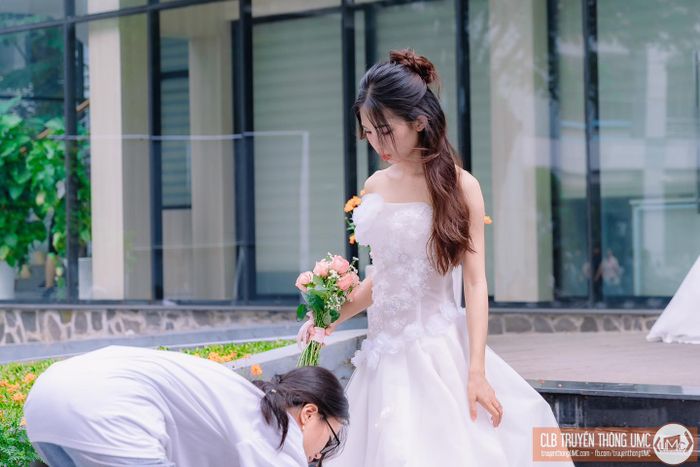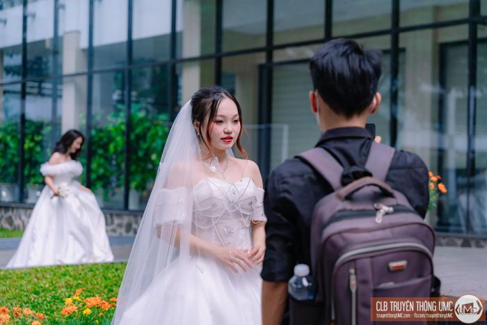 Năm nay, khoa Công nghệ May - Thời trang có 300 sinh viên, chủ yếu là nữ, với chỉ khoảng 10 nam. Để thực hiện bài thi, các bạn nam đã tìm kiếm người mẫu nữ hoặc nhờ bạn bè, người quen đóng vai “cô dâu”.