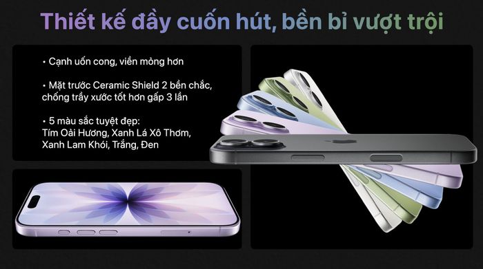 Bên cạnh đó, màn hình iPhone 17 đạt độ sáng ngoài trời tối đa lên tới 3000 nit – mức cao nhất từng xuất hiện trên iPhone. Cả hai phiên bản đều được trang bị lớp bảo vệ Ceramic Shield 2, giúp tăng khả năng chống trầy xước lên gấp 3 lần.