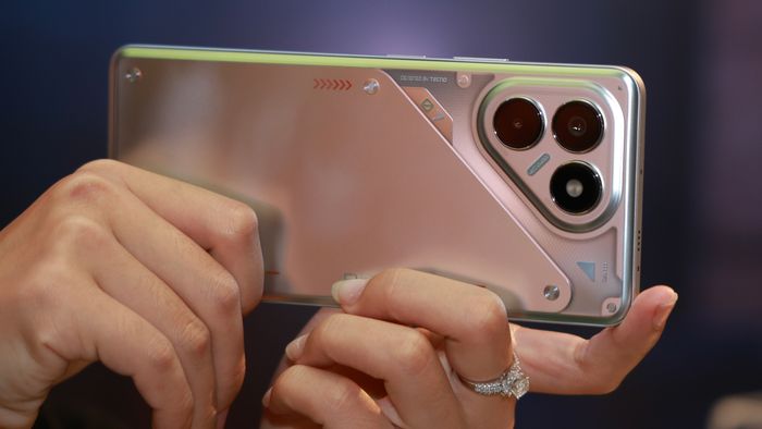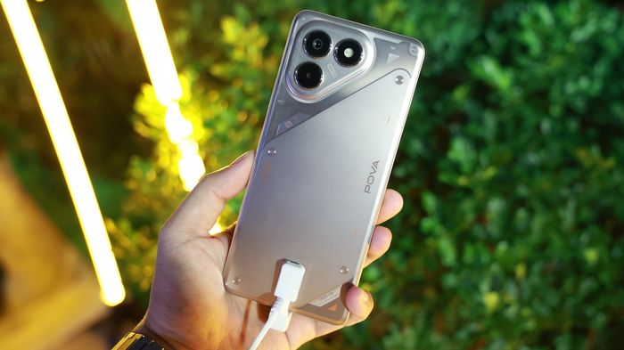 POVA 7 gây ấn tượng với diện mạo hoàn toàn khác biệt theo phong cách Cyber POVA, nổi bật với những đường cắt sắc nét và cụm camera sắp xếp độc đáo theo hình tam giác. Mặt lưng trong suốt phối hợp công nghệ ép phun PC tạo hiệu ứng ánh sáng đầy tính tương lai.