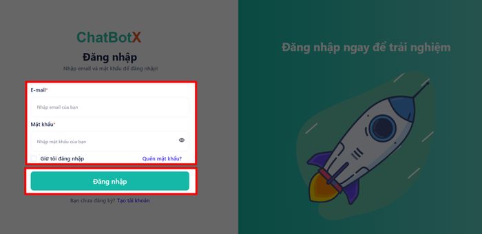 Bước 2: Đăng nhập vào tài khoản ChatbotX AI bằng email hoặc lựa chọn phương thức đăng nhập có sẵn để bắt đầu khám phá các tính năng tóm tắt thông minh.