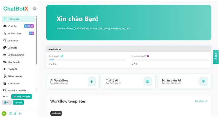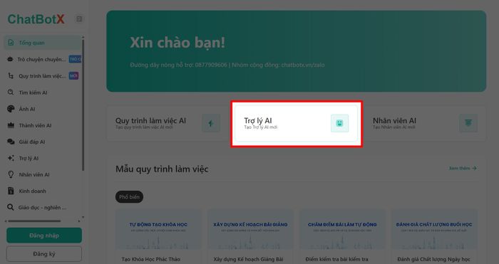 Bước 3: Sau khi đăng nhập, tại giao diện chính, bạn hãy chọn mục Trợ lý AI để bắt đầu sử dụng các công cụ hỗ trợ thông minh từ trí tuệ nhân tạo.
