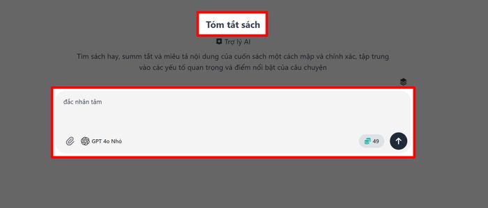 Bước 5: Gõ tên cuốn sách bạn cần tóm tắt vào ô tìm kiếm hoặc nhập liệu để hệ thống bắt đầu xử lý.