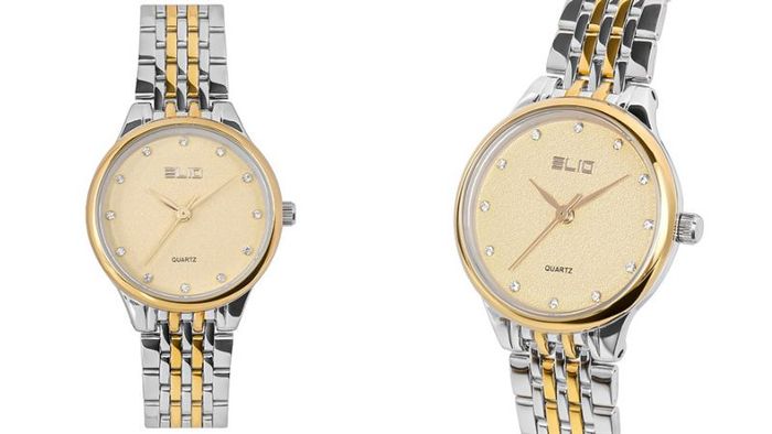 Đồng hồ Elio Nàng Thơ ES059-02 là sản phẩm thuộc thương hiệu của Mytour, mang phong cách nữ tính với đường kính mặt 27mm và độ rộng dây 16mm. Phần khung viền cùng dây đeo làm từ hợp kim bền chắc, sáng bóng, góp phần tạo nên vẻ ngoài thanh lịch và tinh tế.