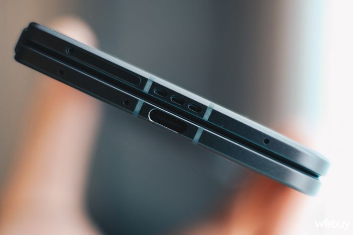 Khi mở máy, độ dày chỉ là 4.21mm, và khi gập lại, nó chỉ dày 8.93mm, gần như tương đương với một chiếc điện thoại dạng thanh. Nếu khó hình dung về con số này, bạn có thể so sánh với cổng USB-C trên điện thoại hay laptop của mình – Find N5 khi mở ra chỉ nhỉnh hơn một chút so với cổng USB-C. Để giải quyết vấn đề này, OPPO đã phải thiết kế viền của Find N5 sao cho có thể chứa phần cổng USB-C, vì máy quá mỏng để tích hợp cổng này theo kích thước thông thường.