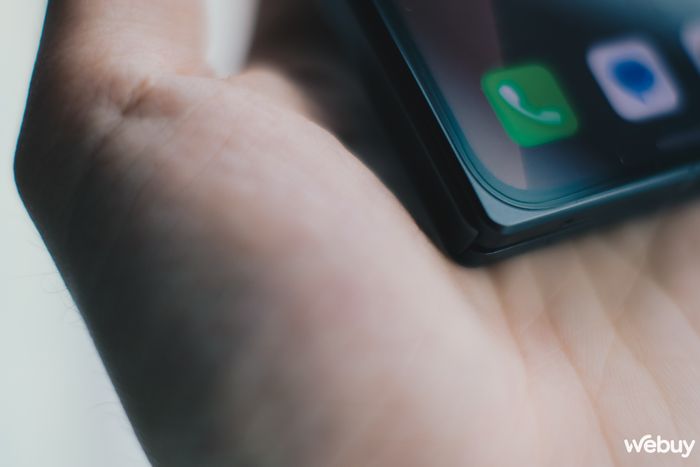 Do máy quá mỏng, lần đầu sử dụng Find N5 tôi có chút bỡ ngỡ. Cảm giác khi mở máy khá "ghê" bởi vì hai bên cạnh của máy quá nhỏ, không có nhiều điểm tựa để cầm nắm một cách tự nhiên. Hơn nữa, bề mặt máy cũng rất trơn, nếu không cẩn thận thì dễ bị trượt tay và làm rơi.