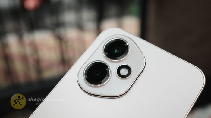 Nói về cụm camera sau, mình cũng hơi bối rối khi gọi tên hình dáng của nó, có thể xem như hình thang cân. Với 2 ống kính cùng 1 đèn LED bố trí theo hình tam giác nổi bật trên nền mặt lưng đơn giản, đây cũng là điểm hút mắt người dùng.