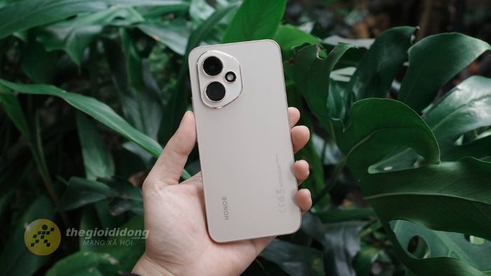 Chiếc HONOR 400 5G mình trên tay có màu vàng cát. Mặt lưng phủ lớp nhám mịn, dù không có hiệu ứng gradient độc đáo nhưng vẫn rất bắt mắt và đặc biệt sang trọng nhờ phong cách đơn giản, thanh lịch.