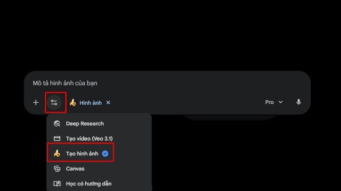 Khi tạo ảnh bằng Gemini (trên website hoặc ứng dụng), hãy lưu ý chọn đúng công cụ Tạo hình ảnh: