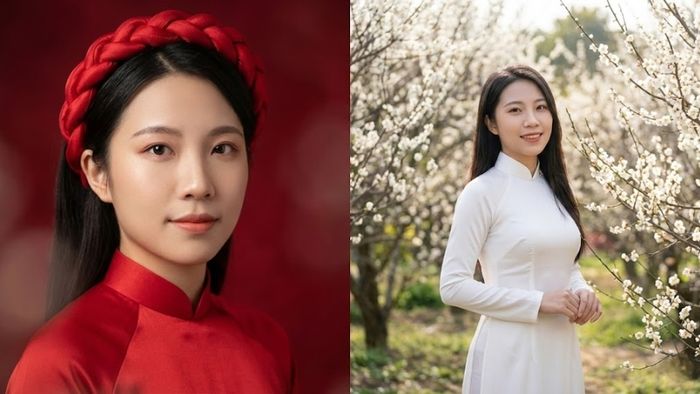 Tạo ảnh áo dài đỏ truyền thống và áo dài trắng