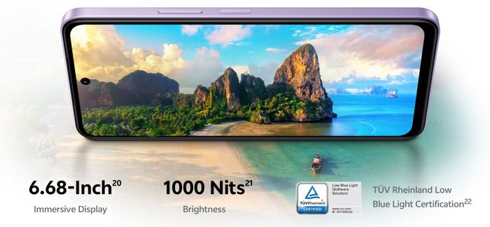 Vivo Y21d sở hữu màn hình Dotch 6.68 inch với độ phân giải 1.608 x 720 pixels, độ sáng lên tới 1.000 nits và tần số quét 90 Hz, đảm bảo hiển thị sắc nét ngay cả dưới ánh sáng mặt trời mạnh. Tấm nền được chứng nhận TUV Rheinland Low Blue Light, giúp bảo vệ mắt khi sử dụng lâu dài.