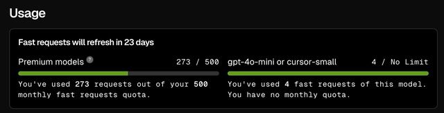 Gói Pro cho phép người dùng thực hiện 500 fast request trong mỗi chu kỳ 30 ngày. Khi hết số fast request này, người dùng sẽ chuyển sang "slow request" với tốc độ phản hồi chậm hơn, hoặc có thể kích hoạt tính năng trả phí dựa trên số lượng request đã sử dụng sau khi hết 500 request.