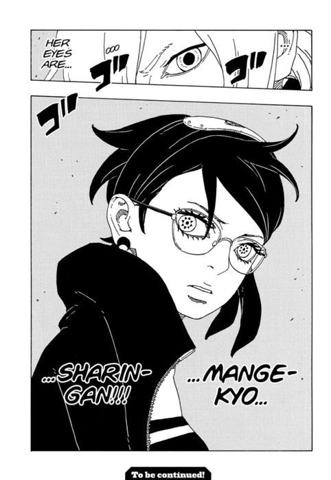 Mặc dù Sarada đã vô tình kích hoạt Mangekyo Sharingan trong các sự kiện gần đây của Boruto: Naruto Next Generations, nhưng phải đến chương mới nhất này, cô mới hoàn toàn thức tỉnh sức mạnh từ nó. Sức mạnh phát ra từ Mangekyo Sharingan của cô có vẻ khác biệt rất nhiều so với cha cô - Uchiha Sasuke.