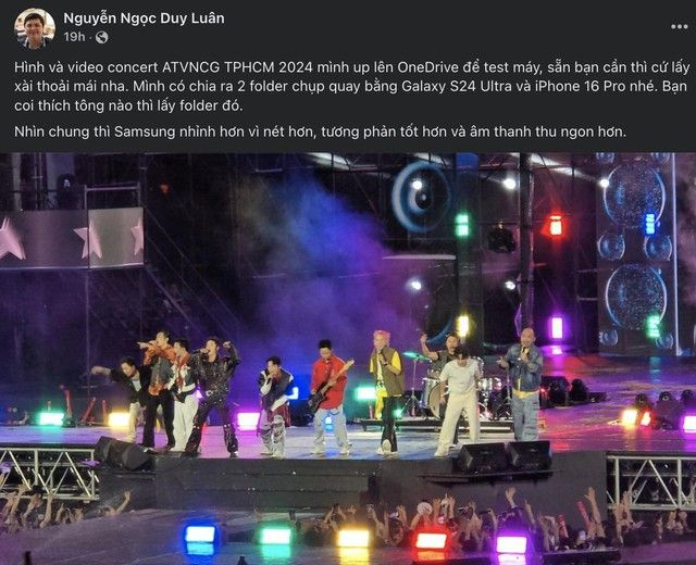Reviewer Nguyễn Ngọc Duy Luân chia sẻ trên mạng xã hội về trải nghiệm quay phim concert bằng dòng Galaxy S Ultra.