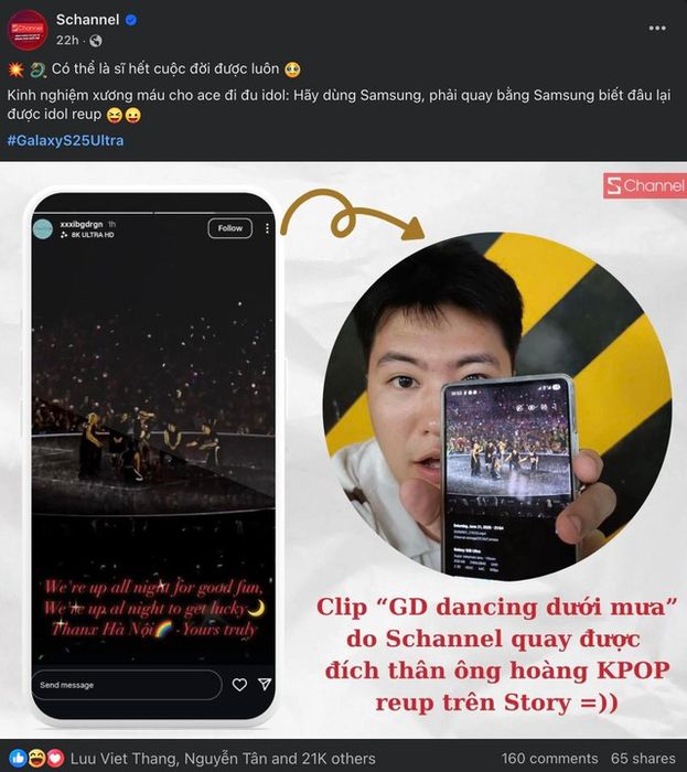 Đoạn phim chụp từ buổi biểu diễn của G-Dragon ở Hà Nội bằng Galaxy S25 Ultra đã xuất hiện trên trang cá nhân của nam idol, chứng tỏ khả năng quay phim và chia sẻ ấn tượng của flagship mới từ Samsung.