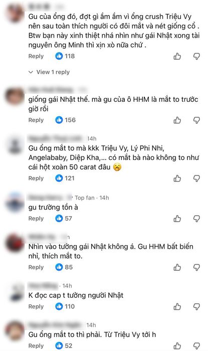 Cộng đồng mạng gọi đây là “gu tình yêu bất biến suốt 20 năm của anh Minh”, vừa như đùa vừa như tổng kết một phần trong câu chuyện tình ái của nam diễn viên. Có người còn nhận xét rằng tân binh này giống như bản sao của Triệu Vy, hay pha trộn giữa Angelababy, gái Nhật và cả Diệp Kha, người tình gần đây của Huỳnh Hiểu Minh. Các netizen còn không ngần ngại so sánh đôi mắt cô gái này với hột xoàn 50 carat.