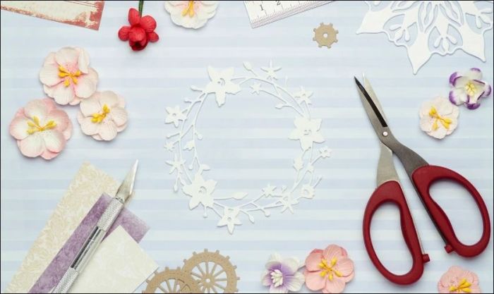 Bước 1: Đầu tiên, bạn cần chuẩn bị nguyên liệu: Giấy bìa màu (giấy A4, bìa cứng...), kéo, bút chì, thước, keo dán, băng dính, màu nước, bút lông, bút chì màu, hạt cườm, ruy băng, giấy gấp (nếu cần).