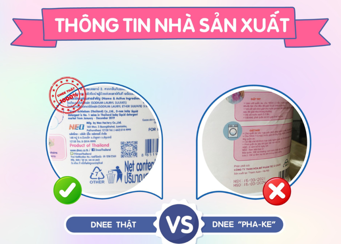 Nước giặt Dnee Thái chính hãng sẽ có đầy đủ thông tin về sản phẩm trên tem phụ (Nguồn: Internet)Phân biệt qua hạn sử dụng