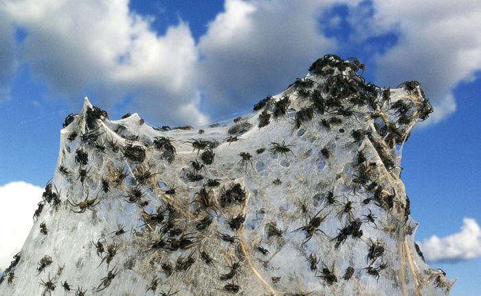 Vào giai đoạn giao mùa hè - thu, nhiều vùng tại Úc bỗng chốc được phủ một lớp trắng xóa như tuyết, nhưng thực chất đó là vô số sợi tơ do hàng triệu con nhện thả ra. Hiện tượng độc đáo này, được gọi là 'nhện bay tập thể', xảy ra khi chúng phóng tơ lên không trung để di chuyển theo gió đến những vùng đất mới. Khi số lượng nhện quá lớn cùng thực hiện hành vi này, cả một vùng rộng lớn sẽ bị bao phủ bởi mạng tơ, tạo nên cảnh tượng tựa như trong các bộ phim viễn tưởng.