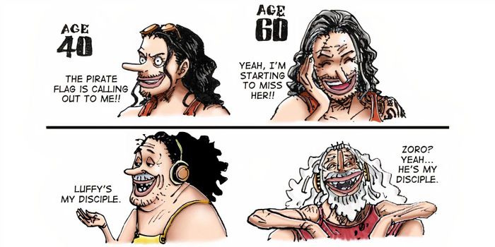 Trong anime, hình ảnh nhân vật chính mãi mãi trẻ trung như Ash Ketchum, Conan hay Keiichi Morisato đã quá quen thuộc. Tuy nhiên, việc để nhân vật trưởng thành cùng khán giả lại giúp tạo sự gắn kết sâu sắc hơn. Oda đã truyền tải điều này qua hình ảnh băng Mũ Rơm ở tuổi 40 và 60 trong một SBS đặc biệt.