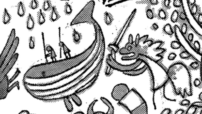 Một trong những quả trứng phục sinh khó hiểu nhất trong bức tranh tường chính là hình ảnh một người Skypeian dưới nước gần con tàu Noah. Điều này có thể tượng trưng cho trận lụt trong Thế kỷ trống, buộc người Skypeian phải di cư lên Đảo Trên Trời. Tuy nhiên, hiện tại rất khó để xác định chính xác ý nghĩa của chi tiết này.