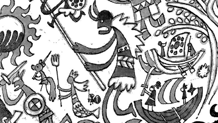 Ở vị trí tiên phong trong đội quân của Nika trên bức tranh tường là một người khổng lồ. Chiếc mũ sắt có sừng, tấm khiên, thanh kiếm và trang phục Viking dễ dàng tiết lộ danh tính của người này. Điều này cũng dễ hiểu, vì Người khổng lồ có nhiều ghi chép nhất về truyền thuyết liên quan đến Thần Mặt trời Nika và thậm chí còn vô cùng tôn thờ nhân vật huyền thoại này.