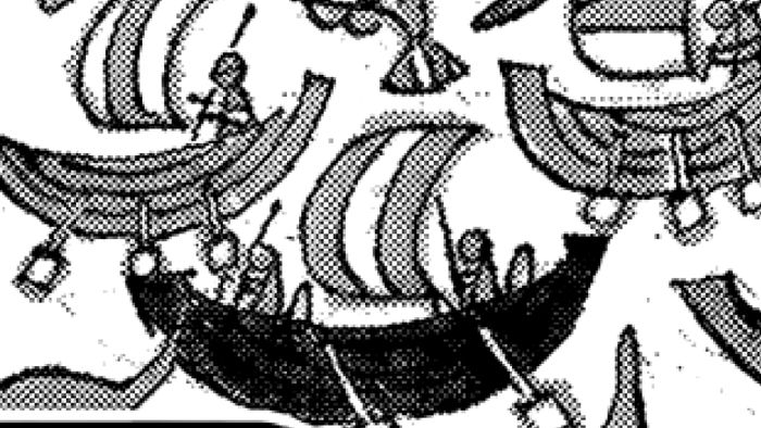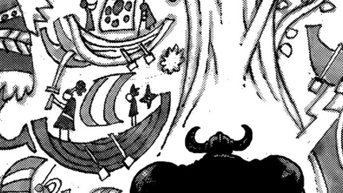 Ngay giữa sự hỗn loạn ở phía bên trái của bức tranh tường, nổi bật lên hình ảnh của một người khổng lồ cổ đại, được nhận diện qua cặp sừng đồ sộ. Người khổng lồ này rất có thể là Loki, người cuối cùng thuộc dòng dõi hoàng tộc thuần chủng Elbaf, và nhiều người hâm mộ tin rằng Loki sẽ trở thành đồng minh của Luffy.