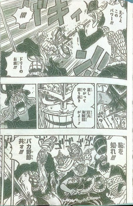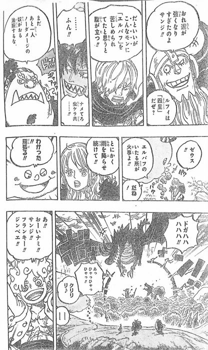 Chương truyện kết thúc bằng một cảnh hoành tráng với sự xuất hiện của Luffy và Loki. Sau khi bị Nami mắng vì màn "tấu hài", cả hai đã có mặt tại hiện trường. Chứng kiến Usopp và Brook bất tỉnh, cơn thịnh nộ của Luffy đã lên tới đỉnh điểm.