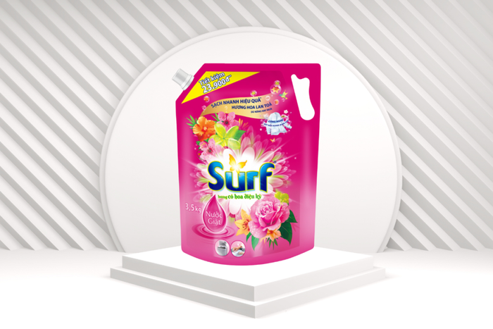 Là sản phẩm chủ lực của Unilever, Surf nổi bật với công nghệ bọt oxy hoạt tính giúp loại bỏ vết bẩn tức thì chỉ sau một lần giặt. Sản phẩm còn chinh phục người dùng bằng bộ sưu tập hương thơm đa dạng từ hoa xuân tinh khiết, nước hoa sang trọng đến hương sương mai tươi mát, lưu giữ hương thơm bền lâu.