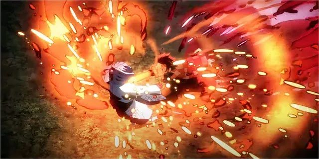 Những chiêu thức Hơi Thở Của Nước của Tanjiro được tái hiện qua hiệu ứng nước sống động, nhưng đỉnh điểm mãn nhãn thực sự xuất hiện khi nhân vật bị dồn vào chân tường. Ký ức về người cha vụt hiện giúp Tanjiro phát động Hinokami Kagura (Vũ Điệu Hỏa Thần), biến mỗi đường kiếm thành vũ điệu lửa cuồng nhiệt. Khi kết hợp cùng Huyết Quỷ Thuật 'Bộc Huyết' của Nezuko thiêu đốt lưỡi kiếm, tạo nên bữa tiệc thị giác đầy mê hoặc giữa lửa và máu.