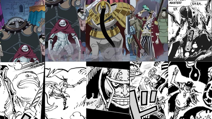 Những cái tên đáng chú ý bao gồm tên buôn lậu Ganzui, người cá trê Barbell, thuyền trưởng John và cả Gill Bastar - nhân vật chính trong one-shot Wanted! của Oda. Thực tế, họ đều đã xuất hiện lần đầu dưới vai trò tướng quân Zombie của Moria tại arc Thriller Bark (chương 450, phát hành tháng 4/2007), tức cách đây đúng 18 năm.