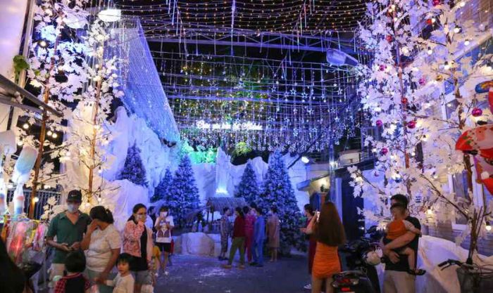 Vào giữa tháng 12, không chỉ các trung tâm thương mại và nhà thờ được trang trí đón Giáng sinh, mà nhiều khu phố và con hẻm cũng trở nên rực rỡ, sáng bừng trong ánh đèn màu sắc.