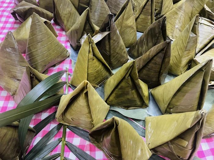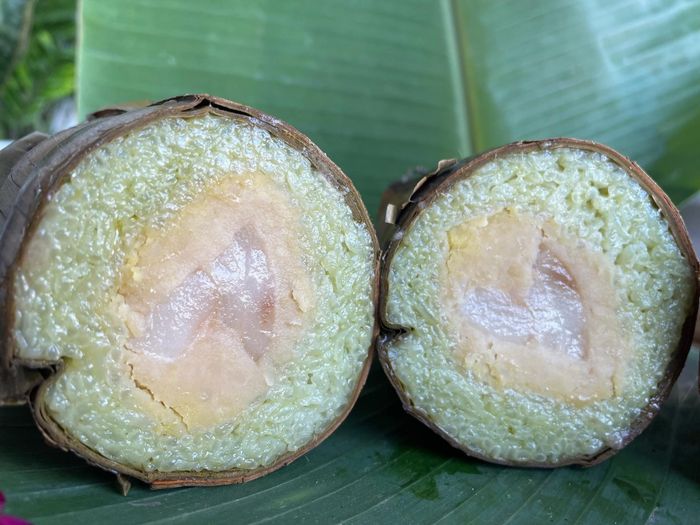 Để làm bánh, nếp được ngâm trong nước cốt dừa cho thêm hương thơm, đậu xanh nấu chín, thịt được ướp với tiêu và muối. Mọi thứ được gói cẩn thận, buộc chặt rồi luộc từ 6 đến 8 tiếng cho đến khi bánh chín mềm.