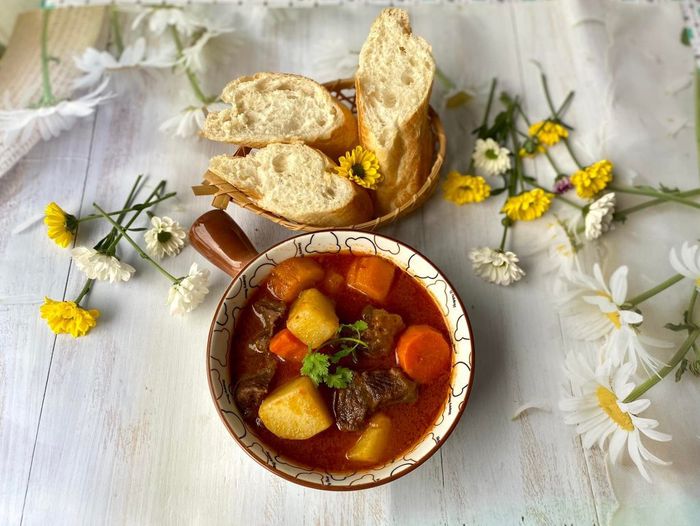 Lagu bò là món hầm mang đậm ảnh hưởng châu Âu nhưng đã được người miền Tây biến tấu để phù hợp với khẩu vị địa phương. Thịt bò được hầm mềm trong nước dùng đậm đà, cùng cà rốt, khoai tây và cà chua.
