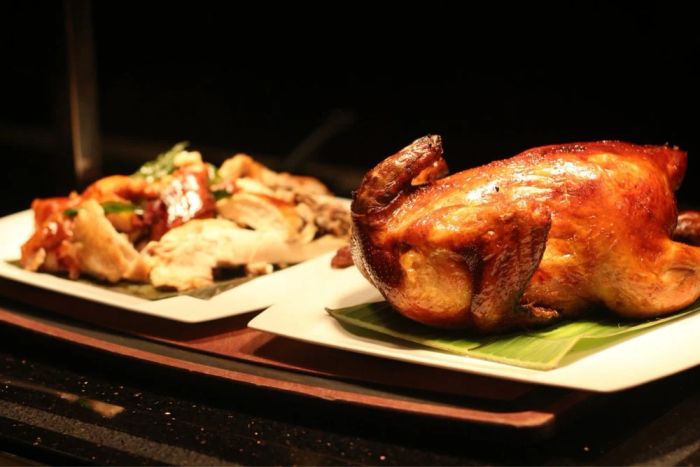 Được xem là “vua gà” của Thâm Quyến, gà Longgang là đặc sản nổi tiếng có nguồn gốc từ huyện Longgang, nơi nổi bật với giống gà thả vườn săn chắc, da vàng óng và thịt ngọt tự nhiên. Khác với các món gà luộc thông thường, gà Longgang thường được chế biến đơn giản: luộc trong nước muối nhẹ hoặc hấp cách thủy để giữ nguyên độ tươi ngon, sau đó chặt miếng và chấm với nước tương gừng đặc trưng.