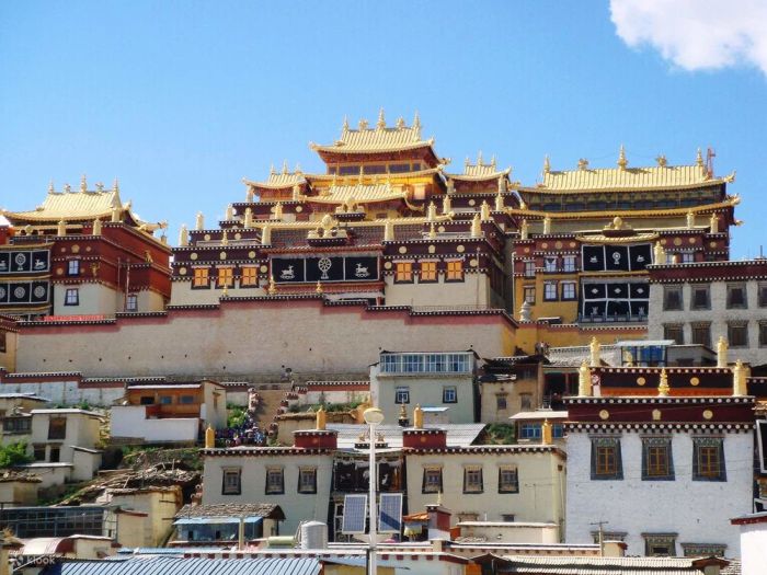 Tu viện Ganden Sumtseling, hay còn gọi là Songzanlin, là tu viện Phật giáo Tây Tạng lớn nhất tại tỉnh Vân Nam. Nằm ở độ cao 3.300 mét trên cao nguyên Shangri-La, tu viện được xây dựng từ năm 1679 theo chỉ thị của Đạt Lai Lạt Ma thứ 5. Với kiến trúc giống như cung điện Potala ở Lhasa, nơi đây rộng 30 héc ta, bao gồm các công trình liên kết, nổi bật nhất là thiền viện trung tâm với 108 cột lớn, tỏa sáng huyền ảo dưới ánh đèn dầu.