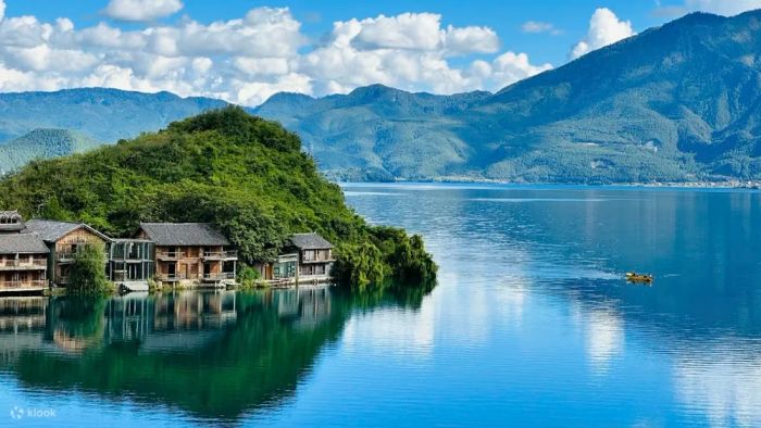Hồ Lugu nằm giữa biên giới tỉnh Tứ Xuyên và Vân Nam, được ví như "viên ngọc của cao nguyên" nhờ dòng nước trong vắt và tĩnh lặng. Du khách có thể tham gia vào nhiều hoạt động thú vị như đi thuyền tham quan các hòn đảo, khám phá các ngôi làng của người Mosuo, hoặc tận hưởng không gian yên bình bằng cách đạp xe quanh hồ.
