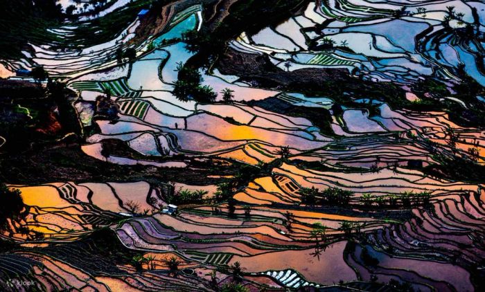 Ruộng bậc thang Yuanyang nổi bật với khoảng 3.000 thửa đất trải rộng hơn 16.000 héc ta, nằm ở độ cao trên 2.000 mét, tạo nên một bức tranh thiên nhiên kỳ vĩ. Mỗi mùa nơi đây lại mang một vẻ đẹp riêng, mùa xuân phủ một màu xanh tươi của lúa non, còn mùa thu là sắc vàng óng ả của lúa chín. Yuanyang là một thiên đường cho các nhiếp ảnh gia và những ai yêu thích vẻ đẹp hoang sơ.