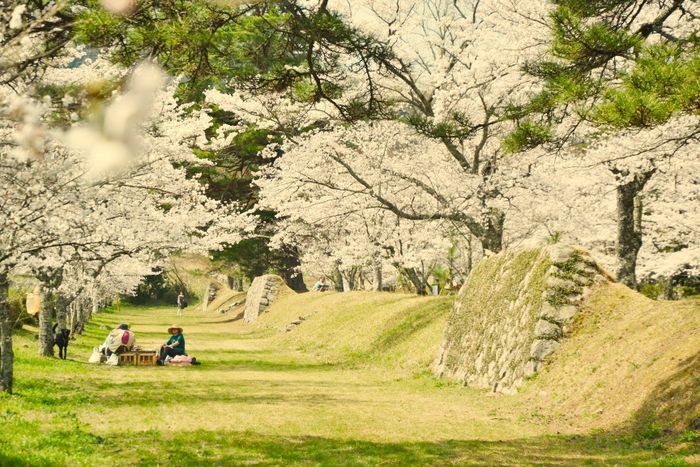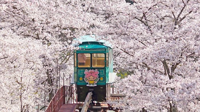 Khi đến Công viên Di tích Thành Funaoka, du khách không thể bỏ qua trải nghiệm đi tàu slope car lên đỉnh đồi trong vòng 4 phút. Chuyến tàu mang đậm nét cổ xưa, từ từ đi qua những “đường hầm” hoa anh đào tuyệt đẹp. Từ trên đỉnh của di tích thành Funaoka, bạn sẽ được chiêm ngưỡng toàn cảnh thị trấn Shibata và dãy núi Zao hùng vĩ ở phía xa. Đây là một trong những địa điểm ngắm hoa anh đào ở Nhật Bản vừa lãng mạn vừa ngoạn mục.