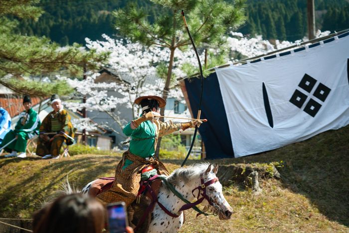 Trong lễ hội này, những cung thủ mặc trang phục săn bắn thời Kamakura cưỡi ngựa nhanh nhẹn dưới tán hoa anh đào rực rỡ, thi tài bắn trúng mục tiêu, trong không khí reo hò, cổ vũ sôi động. Đây chính là địa điểm ngắm hoa anh đào Nhật Bản tuyệt vời cho những ai yêu thích văn hóa truyền thống.