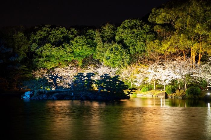 Khi màn đêm buông xuống, sự kiện thắp sáng vào mùa xuân hàng năm biến khu vườn thành một bức tranh lấp lánh, huyền bí. Nếu bạn đang tìm kiếm một nơi ít người biết để ngắm hoa anh đào, kết hợp giữa vẻ đẹp tự nhiên và nghệ thuật cảnh quan, Ritsurin chính là lựa chọn hoàn hảo.