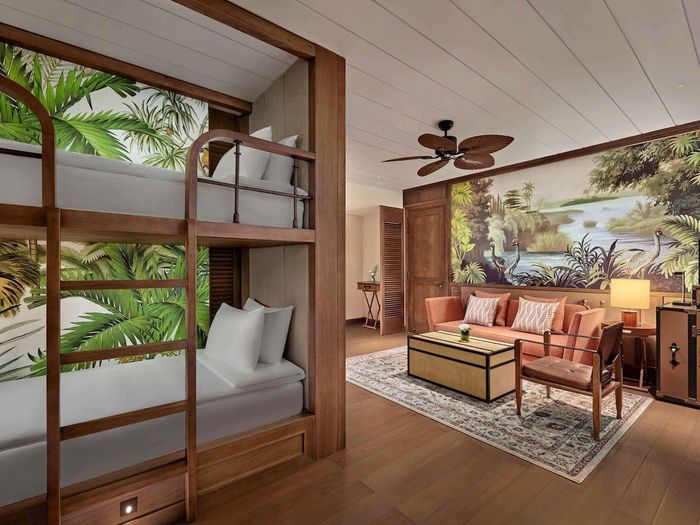 Mövenpick Resort Phan Thiết nổi bật với thiết kế lấy cảm hứng từ thế giới hải tặc vùng Caribbean, mang đến không gian nghỉ dưỡng sang trọng và đầy trải nghiệm cho gia đình. Khu resort sở hữu các phòng và suite rộng rãi, trần cao thoáng, ban công riêng biệt. Nội thất được trang trí với các chi tiết phiêu lưu như bản đồ cổ và rương kho báu, tạo nên cảm giác thú vị cho cả người lớn lẫn trẻ nhỏ.