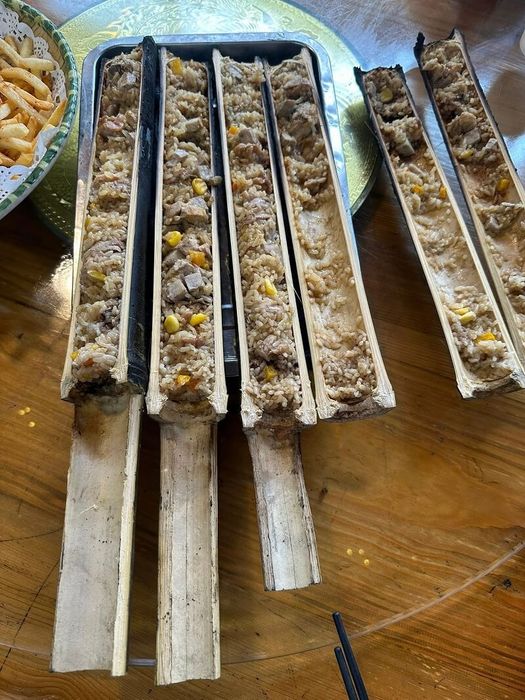Cơm ống tre Long Tích được chế biến bằng cách nấu trực tiếp trong ống tre, nhờ đó giữ trọn hương thơm tự nhiên của gạo hòa quyện cùng mùi tre tươi. Món ăn mang đậm bản sắc văn hóa miền núi và dân tộc, trở thành trải nghiệm ẩm thực độc đáo khi khám phá các vùng nông thôn Quảng Tây.