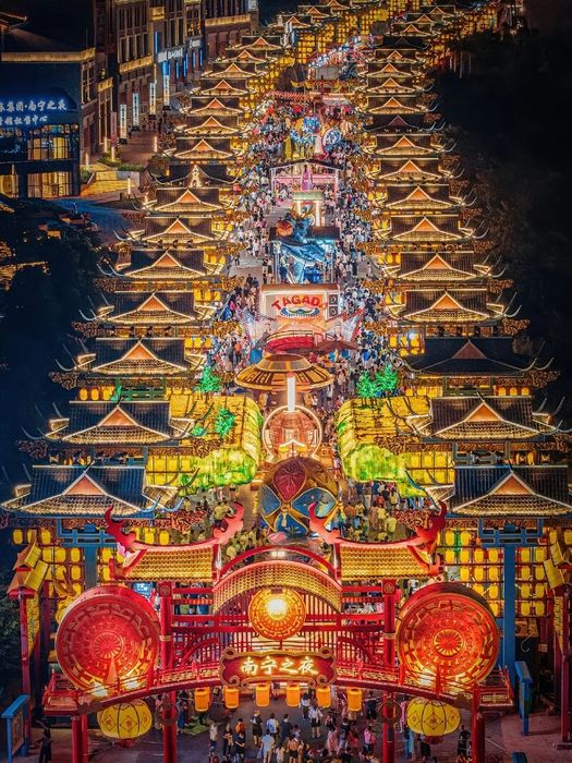Nanning Everbright City (Nam Ninh Chi Dạ) là khu vui chơi giải trí về đêm sôi động bậc nhất Nam Ninh, được xây dựng theo phong cách thời Đường. Không gian gây ấn tượng với cổng thành uy nghi, mái ngói cong cổ kính, dãy phố đèn lồng rực rỡ cùng hệ thống ánh sáng nghệ thuật quy mô lớn.