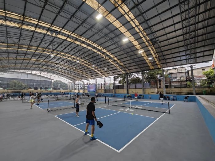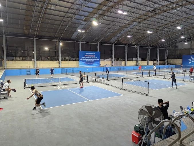 Sân Pickleball – HK Sport gồm 7 sân có mái che, không gian rộng rãi và thoáng mát. Hệ thống chiếu sáng LED chống chói hiện đại được lắp đặt khắp sân, đảm bảo ánh sáng đủ cho việc chơi vào cả ban ngày và ban đêm. Mặt sân đạt chuẩn quốc tế, luôn được vệ sinh sạch sẽ và có độ bám tốt. Khu vực nghỉ ngơi rộng rãi, với đầy đủ ghế ngồi và quạt máy giúp người chơi thư giãn sau khi vận động.