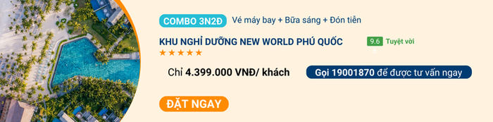 New World Phú Quốc Resort tọa lạc tại bãi Khem, phía nam đảo Phú Quốc. Khu nghỉ dưỡng bao gồm 375 biệt thự mái tranh với 1 đến 4 phòng ngủ, mỗi căn đều có hồ bơi riêng và không gian rộng rãi, lý tưởng cho các gia đình và nhóm bạn. Nổi bật với hồ bơi trung tâm dài 120 mét, spa với 16 phòng trị liệu, bãi biển riêng và cát trắng mịn. Ẩm thực tại đây đa dạng với nhà hàng The Bay Kitchen phục vụ buffet phong phú và Lua Grill & Bar chuyên món nướng và hải sản. Đây là một trong những khách sạn Việt Nam được vinh dự lọt vào top những khách sạn tốt nhất thế giới.